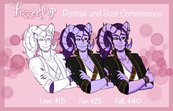 ✨Hey everybody! I have my commission prices lowered for the remainder of the summer to help get by! This image says bust/portrait but the prices go for up to full body as well, the only thing that ups the price is additional characters ✨ Thanks for your help! ✨