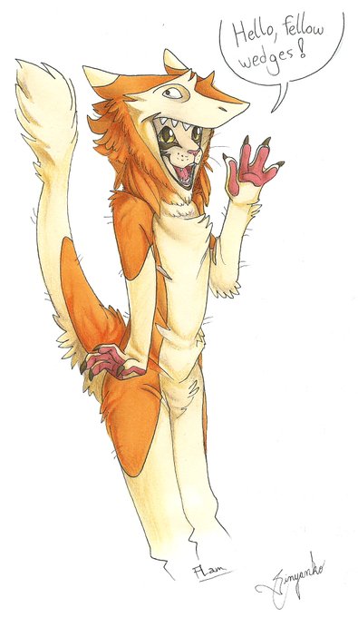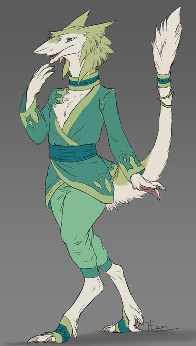 Older Aaron, my western-southern mixed #sergal who works as a fashion designer and tailor in Gold Ring :3