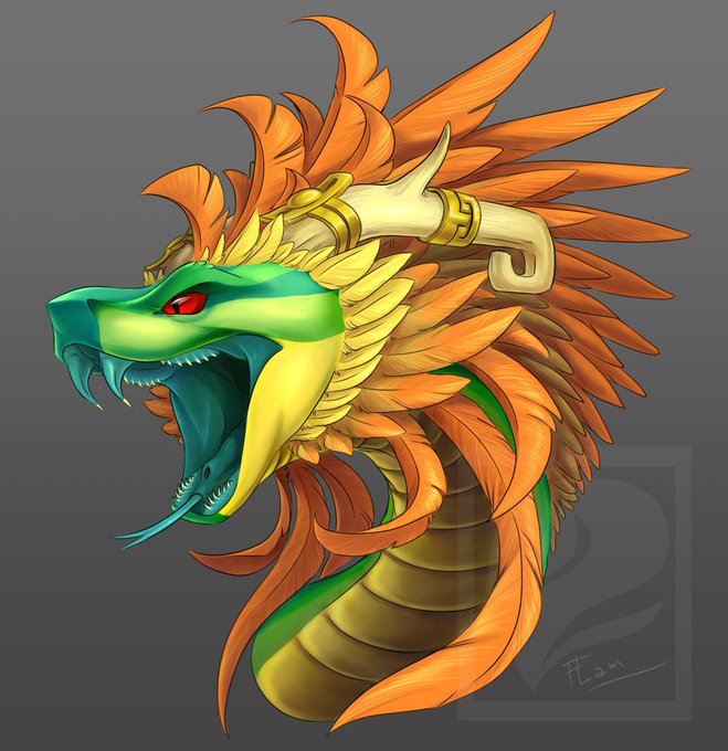 Finished the quetzalcoatl headshot! Now it's time to work on the full body pic @..@ (commission for @Kalemendrax )