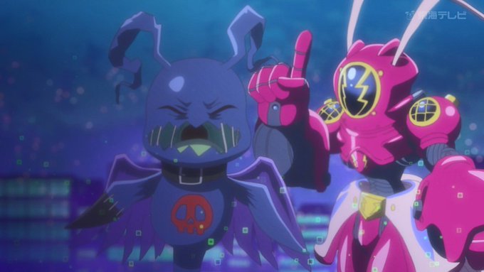 Just watched todays episode and man - I love Amphimon so much omg its my favorite design of the GG gang by far. She even has A rider kick attack type and funnels? LETS GOOOOO - PINK KING GAINER!!!!!  #DigimonGhostGame #Digimon