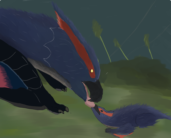 Nargacuga mom and her bab. I genuinely had no idea mothers day was coming up while making this, either way happy late momsters day.