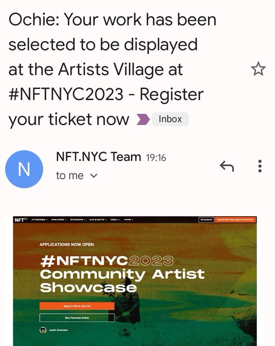 What a lovely news: my art will be shown in the #NFTNYC2023 @NFT_NYC Community Artist Showcase at https://t.co/yPF1YAAAje (North Javits, April 12-14), woohoo!! Thank you so much NFTNYC team! Let's rock thizzz!