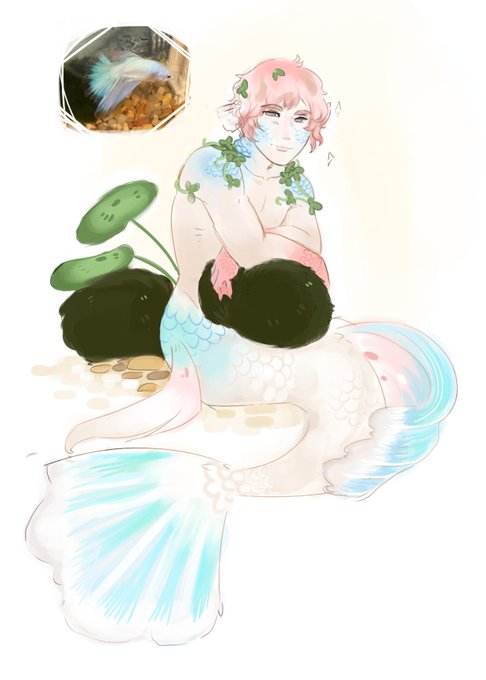 Got a break so I decided to do a quick doodle of my betta as an adorable merman <3