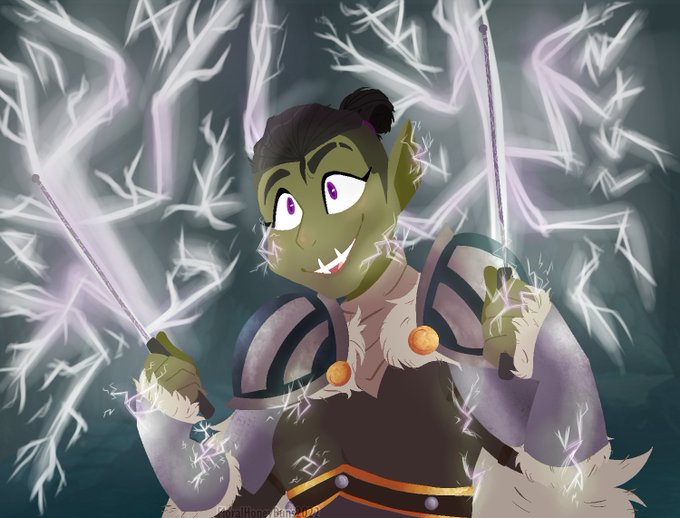 My wife's half-orc had a moment, and had some cool lightning drumsticks, and yeah! I love Kel. 🥰