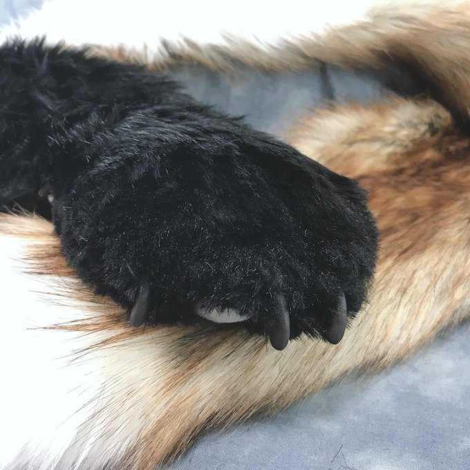 今季の新作、おてて付ききつねマフラーです!🐾 もちもち素材の肉球にキャスト製の爪、手の先にはポケットが! 摩擦の強い素材使ったループ付きでズレ落ちの心配も無さそうです🙆♀️ ファー生地は国産の肌触りの良い物を使用しました✨ 価格は¥20,000- #もふもふしっぽのきつね達展3 にて販売します🦊