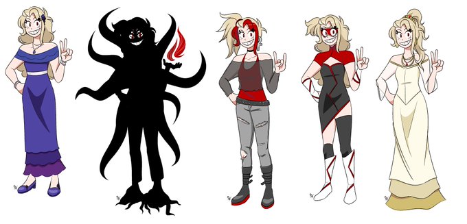 the designs i made for #outfitaugust back in 2018. I've totally dropped the blonde OC ever since I shifted my OC...creating...direction? I should find a place for her in the future, bit of a waste of a character design