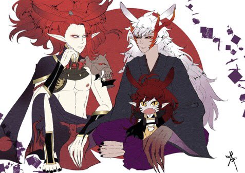決戦とGW商戦が重なり、バトル漫画の更新が遅れており申し訳ありません💦子供の日ということで、なきりさんから再び!!酒茨家&茨酒家イラストをいただきました!!ちびちゃんが成長して力を使えるようになっていて、酒呑が落ちないように茨木を掴んでたり、ちび酒呑の手の可愛さ…!!