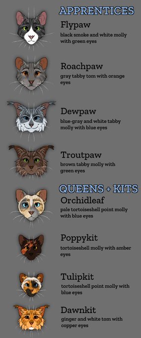 The biggest of the four clans, ValleyClan lives in the lush forested valley. ValleyClan cats believe themselves to be blessed by the valley itself and have an air of arrogance about them, though they always try to help other clans in need.