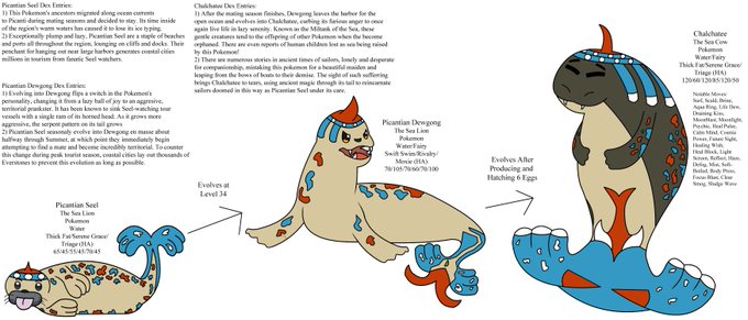 Man I really gotta stop disappearing for entire months. Anyways, I made some gift #fakemon for my friends' birthdays! Happy (belated) B-Days to @Quartzionic, @CanonGod, and Dominic on Discord! Hope you enjoy the #Pokemon!