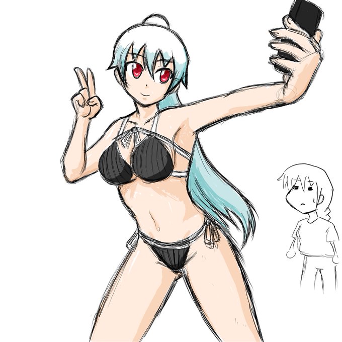 これは3日位前に描いて貼り忘れてたリングフィット後の僕と、昨日配信で描いた危ない水着の自撮り(になってしまった)僕!!