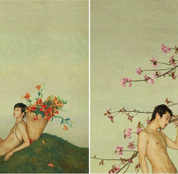 【新文人美男CG摄影】以国画工笔画风的CG摄影/独此一家首创。选自微博摄影大师@布法罗的树孙郡 《百花录》(男子部);他超越了性别,突破了男性和女性之差异,古典之美,不带偏见的纯粹美。 【推特版6集(5)】