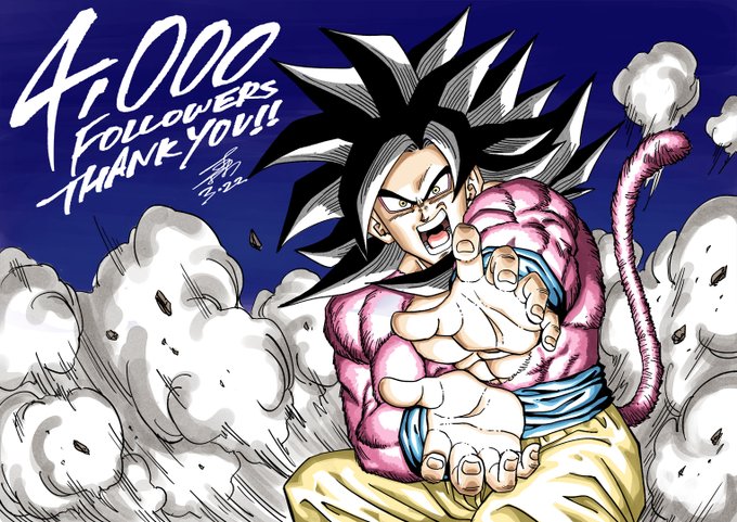 フォロワー4千人達成記念で1千 ~ 4千人記念イラスト再揭しました、やっと超サイヤ人1~4集まった!🤣✨