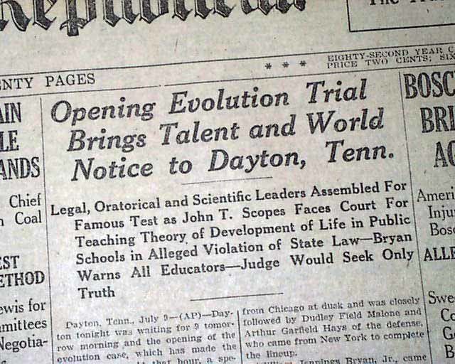 The Scopes Trial began #OnThisDay in 1925. The proceedings, which would run for 12 days as John Scopes was prosecuted for teaching evolution, opened with a prayer. https://t.co/oEO6B5kwGe
