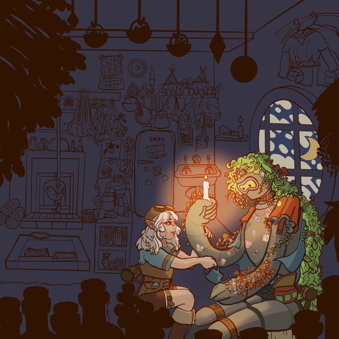 @CamilleDoesDND I can do a piece like this starting at $200! 5 players will be more though, it’s not easy fitting them all in one drawing haha