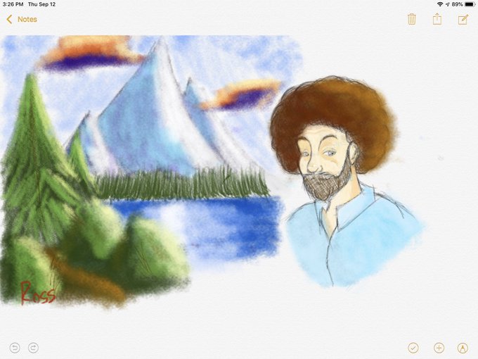 I got bored in class and did this in my notes app, I challenge you to do the same #BobRoss