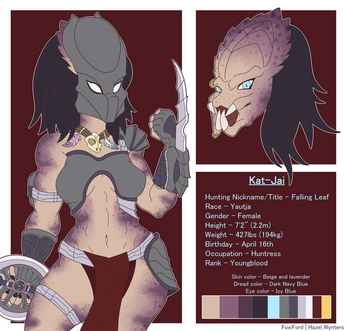 She did the original drawing, I just lined and colored it for her! This is a ref for her Yautja character, Kat-Jai!
