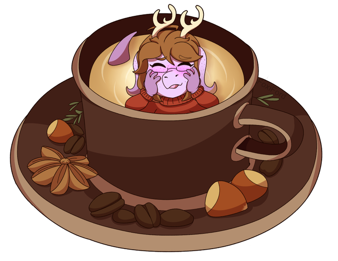 My part of a little art trade with @Hazel_Wynters that we did for our day off since classes were canceled today. I decided to do a little something different and draw her sona chilling in a lovely hazelnut late. Hope you like it my love! 💜💜