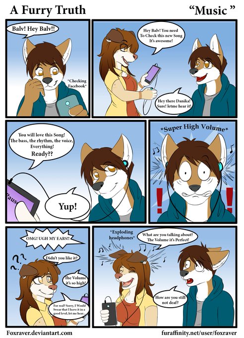 #comic #funny #furry #foxraver #music #headphones #comicstrip #wolf #canine