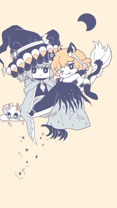 #FGO 🎃🎃🎃HAPPY HALLOWEEN🎃🎃🎃 🦇オベぐだ🦇 🐈⬛立香in黒猫&オベロンin魔女🪄