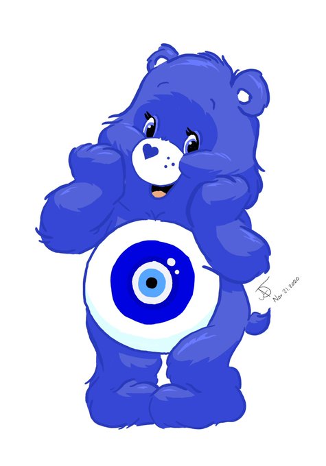 Well this drawing is full of firsts, first drawing in a year, first, drawing since having wrist surgery in June, and my first drawing not on paper! Meet the evil eye care bear!