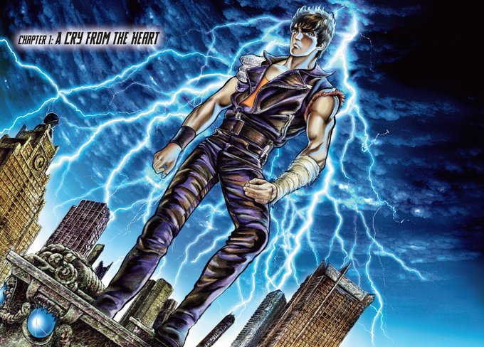 Man, the original Fist of the North Star color pages are fantastic. Those translated onomatopoeia tho, lol.