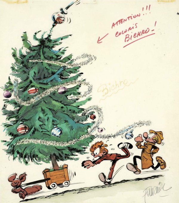 Dessin original #Spirou et Fantasio par #Fournier #JoyeuxNoël !