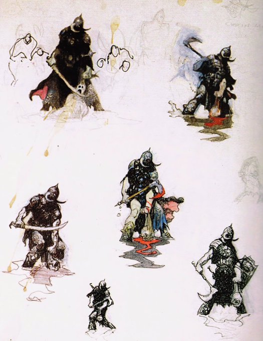 Classic Frank Frazetta, coffee stains on sketches☕️