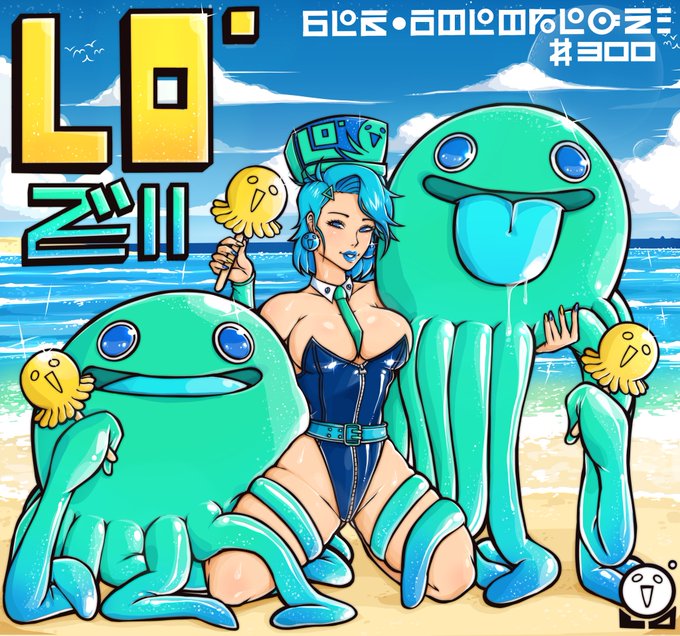 Ive got all the sketches down for some sticker designs! Its gonna be a set of 3 of LO。stuff!! 1st will be her with a octo guy licking an ice cream (maybe in a suggestive manner), 2nd Bending over and showing off the LO drink and finally just a little octo guy holding the bottle