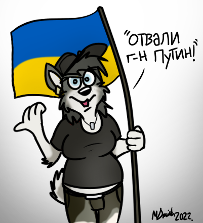 An older character of mine, Ruslana the husky is half-Belarusian and half-Russian. She was never a fan of either country’s leadership (or lack thereof) and certainly is no fan of what either are doing to their neighbour Ukraine!