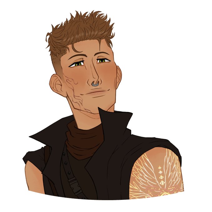 First we have Kaida (he/him), our local himbo, who is played by @LemarTheConGuy ! Kaida enjoys talking to his canary friend, Shibu, and not dying.