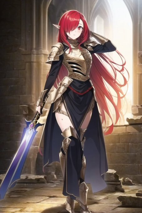 本日の #AIイラスト は赤毛の剣士的な感じでごぜます