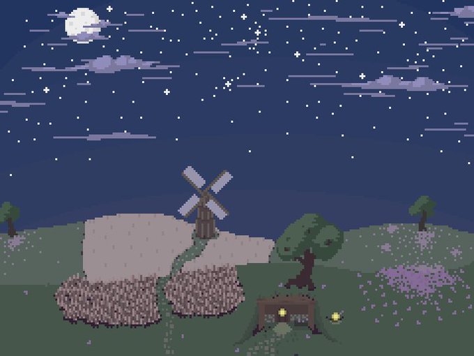 A beautiful midnight in the land of wheat in my wonderful little hobbit house. #pixelart