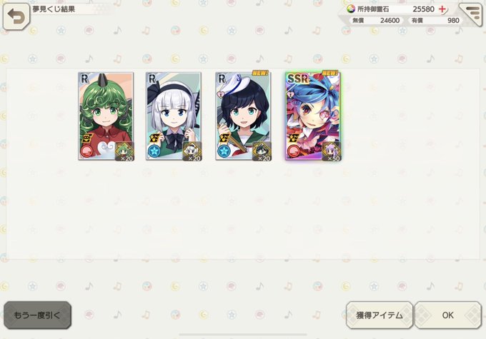 んー18連でエンプレム咲夜、そして今回の新規SR 一応属性ボーナスだけ効くからないよりましかー #ダンカグ