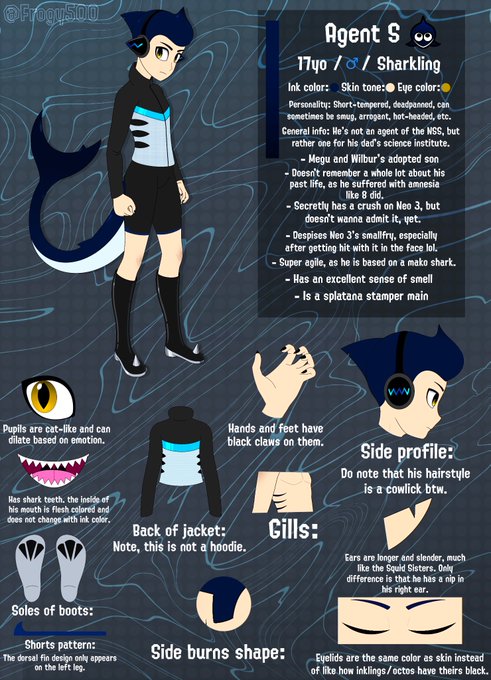 And yeah, one of them is a sharkling lol. 👀 He’s my own original agent OC, his name is Agent S. 🦈