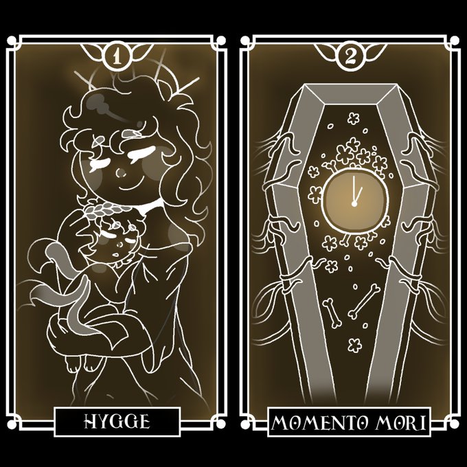 Oracle cards that are part of another uni project! All the characters are personifications of life and death.
