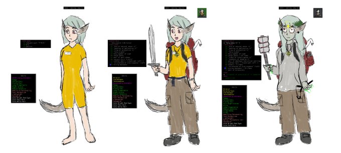 I know I've been quiet, had some weird weeks where I slept too much and did nothing. Still, I managed to find some inspiration in this game called Cataclysm: Dark Days Ahead and doodled/painted my characters. They're dead by now, this is a survival roguelike and I suck at it.