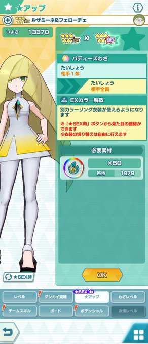 とりあえず19まで伸び代を上げてた人を☆6EX化する8人目はルザミーネ&フェローチェ! EXカラーが完全に悪役カラーだよ〜w それから振袖リーリエも☆6EX化! こちらはEXカラーも鮮やかで素敵♪ ☆6EXはこれで75人。 #ポケマス #ポケマスEX
