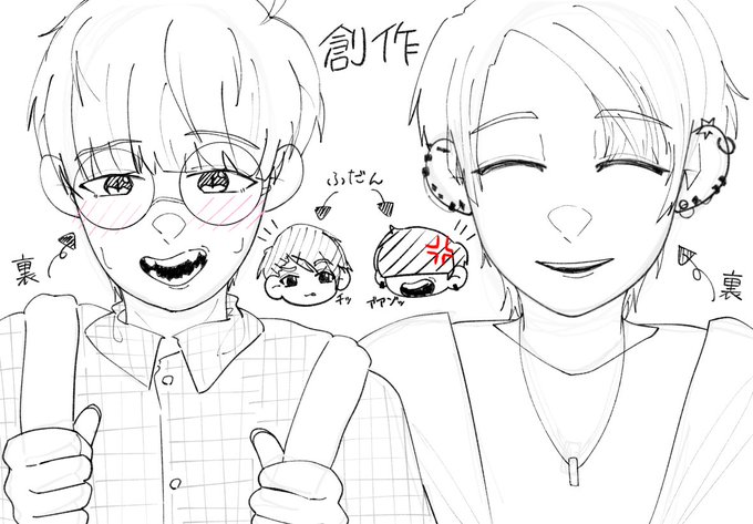 あ、ちなBL創作漫画のキャラ紹介しときやす👾 ⬛️キャラ名⬛️ 左:穂(みのる) 右:幸希(こうき) です! よろしくおねがいします(?)🙇🙇