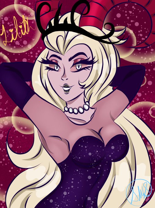 Earlier I drew the alluring Queen of Hell, and I wanted to draw her again 👑 Hope you like her! 💙 (cant wait for the pilot! Saw posts about the preview event and I’m super hyped! ) #HazbinHotel #HazbinHotelFanart #lilith @VivziePop #HuniCast