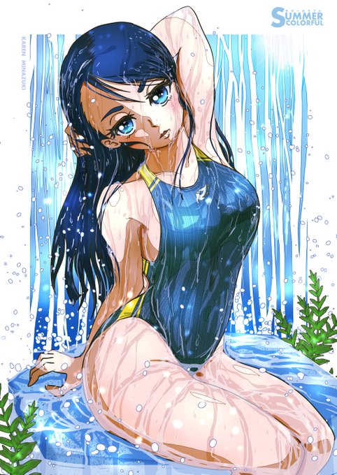 ずぶ濡れ天気雨 #海藤みなみ #サマーカラフル #競泳水着 https://t.co/zffb4N2vlL