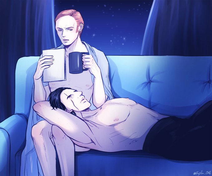 過去絵再掲 kylux絵つめ④ 小説ファズマに出てきた将軍様の部屋にあるアイスブルーのソファ レンとハックスの部屋の内装がよく似てるって聞いてテンションあがった