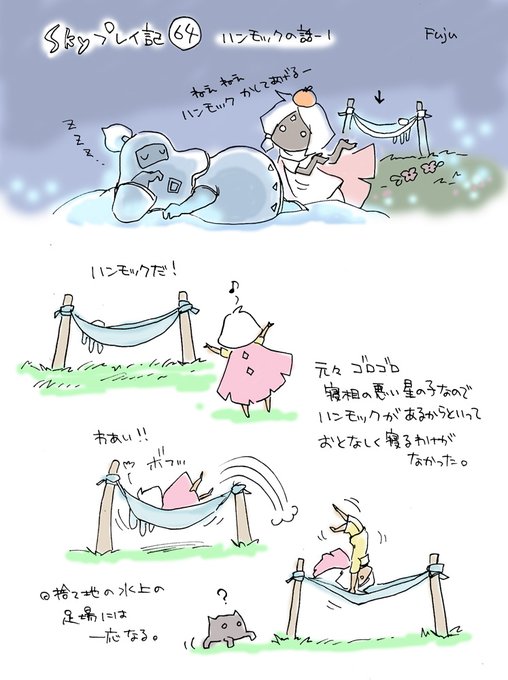 Skyプレイ記録その64・65 ハンモックの話。 風ビトのは吹っ飛ばされた先で隙間に挟まって永遠にぐるぐるする。複数回同じところでハマった。 #thatskygame