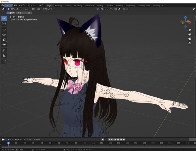 私が3D関係のコンテンツ開発時に操作キャラとして活躍する私のアバターで、Unreal engineや、 cluster、play canvas等々での仮想空間をデバッグしています🐾