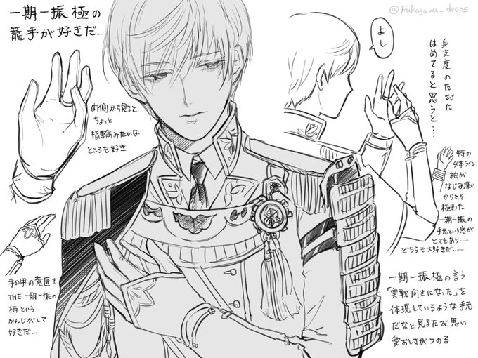 ワンドロ開始を待っている間に描いていたメモ描きです……一期一振極の籠手がとても好きだ……