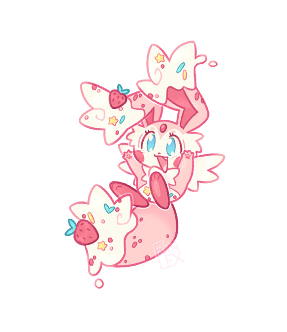 Here's a Poke'hybrid OC commission! This one is mainly tyrantrum with alcremie features, and other requested tweaks, including custom colors. Chocolate birthday cake theme!