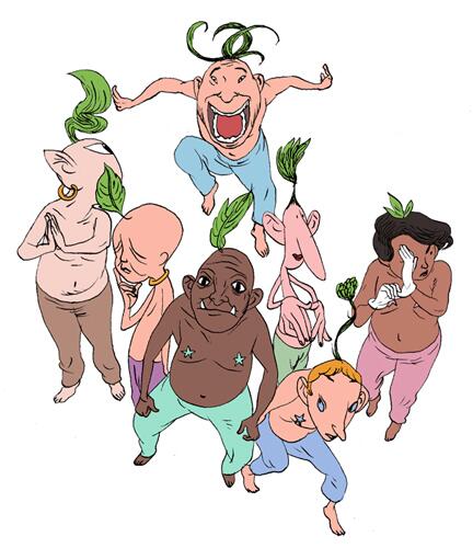 Snow(Black)White and her seven dwarves.Shall I turn this into a short story?