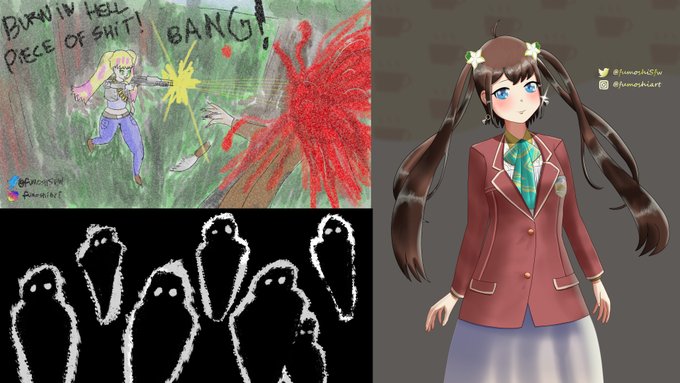 Hi, I am Fumoshi, a self-taught artist who experiments with various styles and digital techniques looking for knowledge, you can find actualized extra information on the replies of this tweet.