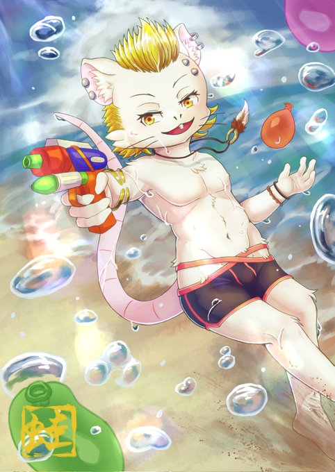 Water gun fight !! 「オレと一緒に…濡れようぜっ!!」 #ケモノ #furry #イラスト