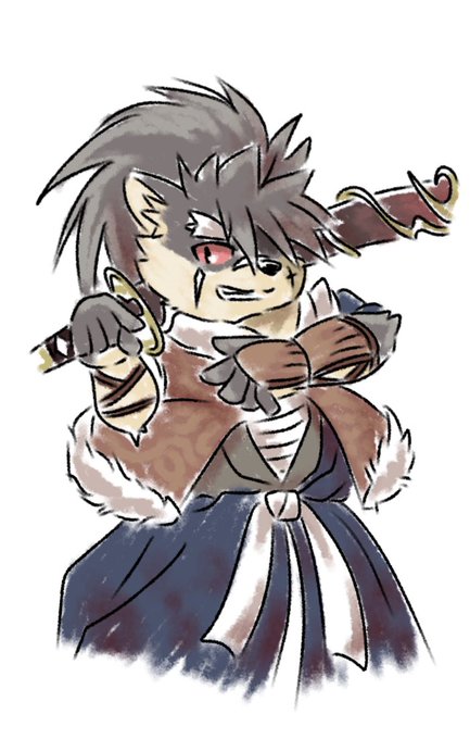 #放サモサロチケで1番目に来たキャラに2番目に来たキャラの服を着せる 道着だと普通過ぎたので カグツチ君も足してみました(