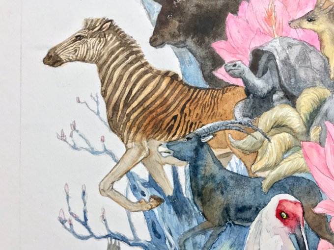 #ニホンオオカミ  #トキ #ステラーカイギュウ #水彩画 #アナログ絵描きさんと繋がりたい
